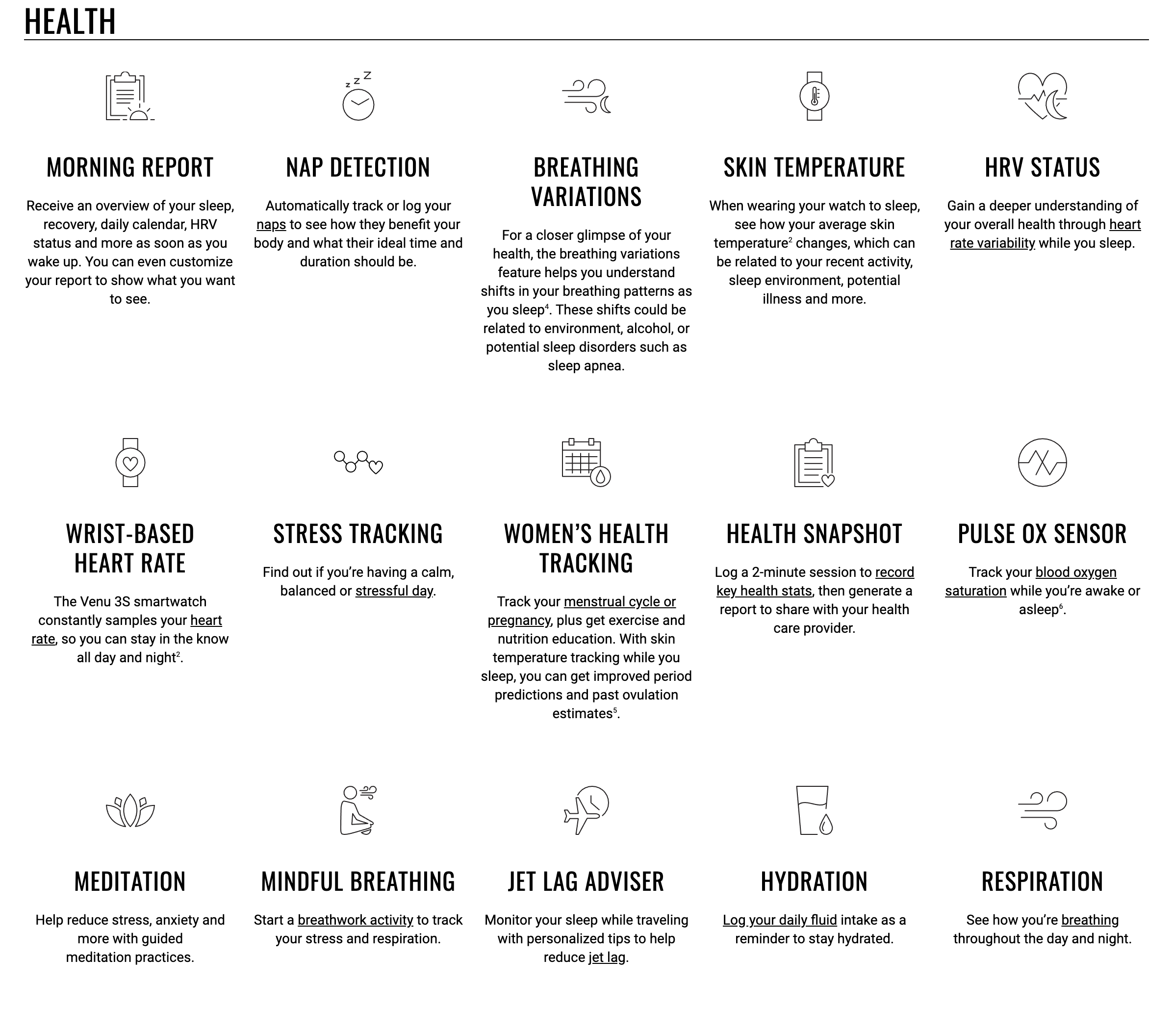 Purpose-built with advanced health and fitness features and the ability to make calls and send texts, Venu 3S is more than just a smartwatch — it’s your personal on-wrist coach there to support your every goal.
